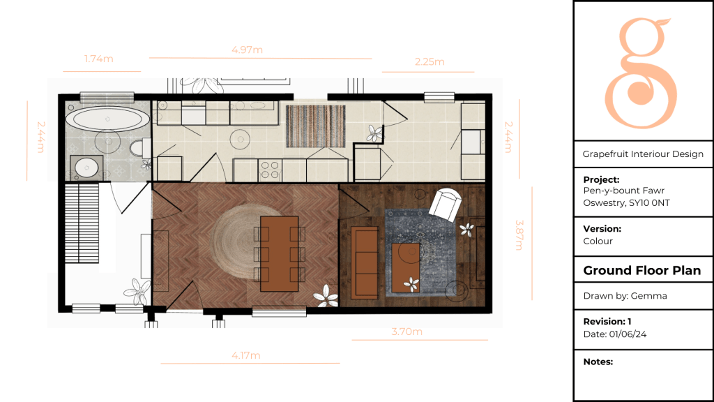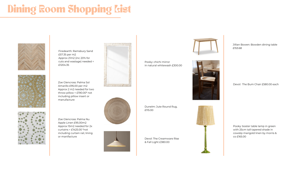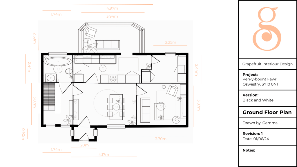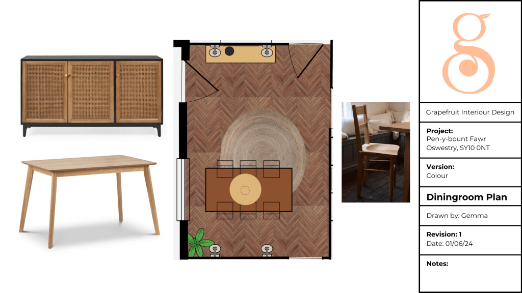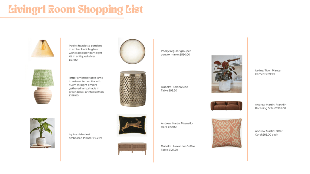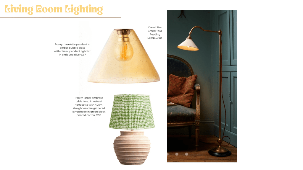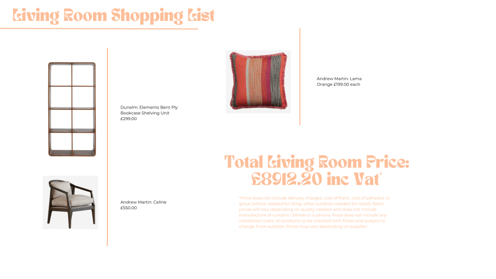 You will need to provide any architects’ drawings (or your own measurements) and images that help me understand your style and vision for your space. I will also need to know your timescales and budget. After a phone or Zoom call to discuss your project, I will create your design pack.