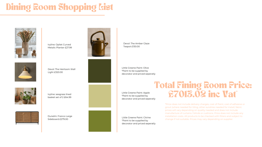 The design package is £500.00 per room, with a reduced price for partial projects. Full payment is required upfront.
